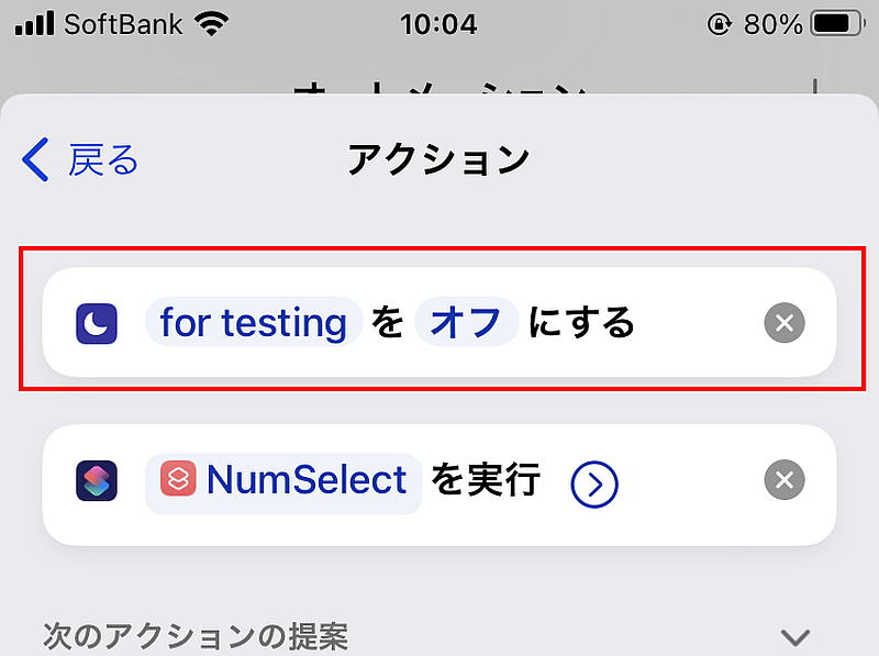 アクションの中身ですが、必ず先頭に今回使用した集中モードをオフにするアクションを入れます.